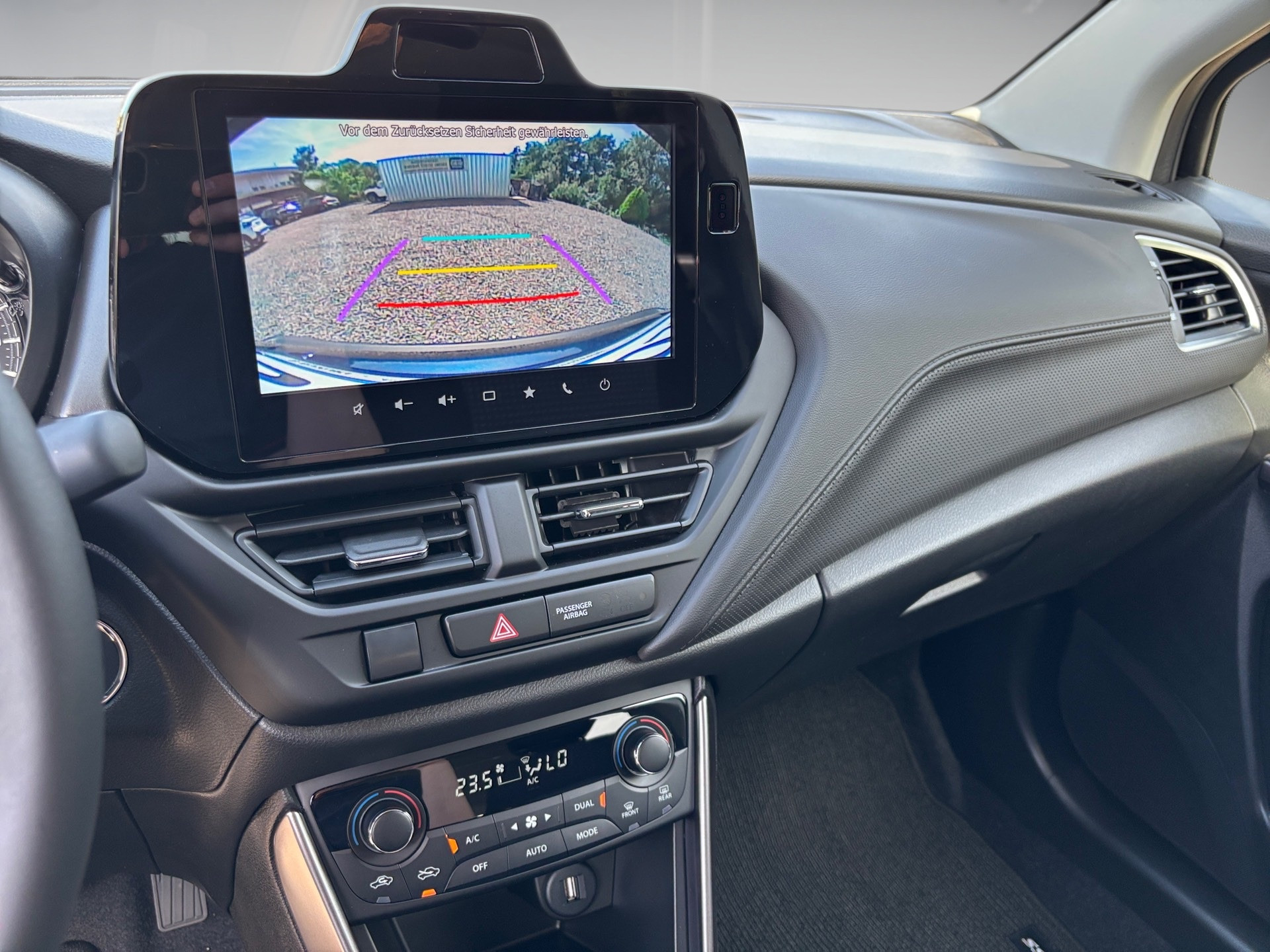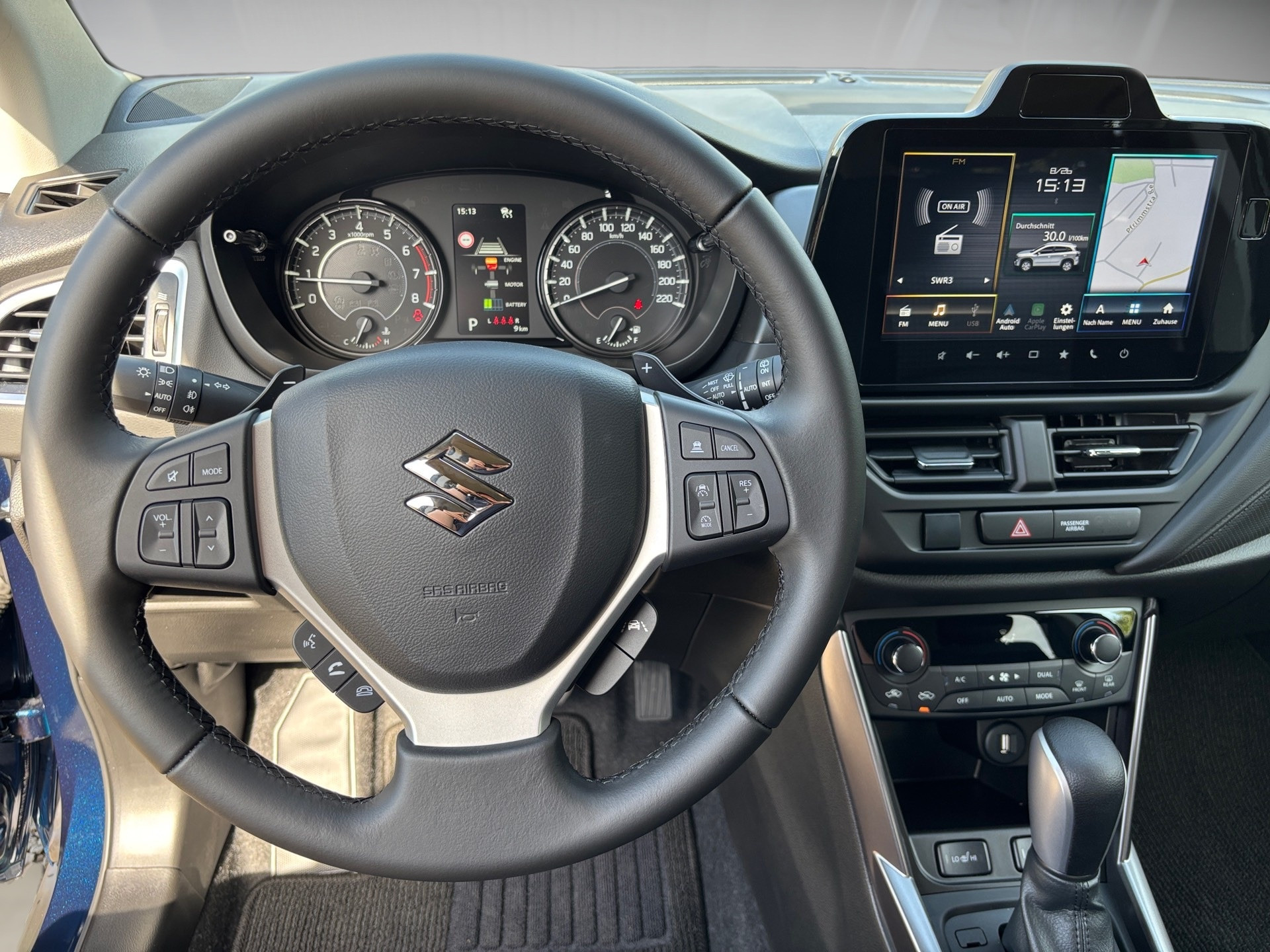 3 Jahre Herstellergarantie + 3 Jahre Neuwagenanschlußgarantie ab ErstzulassungZweizonenklimaautomatik mit PollenfilterFensterheber vorn und hinten elektrischAdaptiver Tempomat (ACC) mit Berücksichtigung erkannter GeschwindigkeitsbegrenzungenInnenspiegel automatisch abblendendSitzheizung vorn (2-stufig)Fahrersitz höhenverstellbarRücksitzlehne im Verhältnis 60:40, separat umklappbarRücksitzlehne neigungsverstellbarLederlenkrad höhen- und längsverstellbarInnendekor silberfarbenMittelkonsole mit Ablagefach und GetränkehalternMittelarmlehne mit Ablagefach vornMittelarmlehne hintenSeitenfächer vorn und hintenDoppelter KofferraumbodenSonnenblenden vorn mit Schminkspiegel, beleuchtetFarbiges LCD-MultifunktionsdisplayAudio-System (inkl.DAB+) m. Smartphone-Anbindung inkl. Navi,Bluetooth-Freisprecheinr. u. Lenkradbed.9 Zoll Display mit HD-Auflösung6 LautsprecherUSB-AnschlussSUZUKI CONNECTKeyless Start (schlüsselloses Einsteigen und Starten mit Starterknopf)Außenspiegel elektrisch verstell- und anklappbar, beheizbar, mit integrierten SeitenblinkernLED-Scheinwerfer (Horizontales Design)LichtsensorFernlichtassistentManuelle LeuchtweitenregulierungNebelscheinwerferPrivacy Glass (Heckscheibe und hintere Seitenscheiben abgedunkelt)RegensensorZierleiste unterhalb der Seitenfenster in Chrom-OptikKühlergrill mit Chrom-ApplikationenApplikationen am unteren Frontstoßfänger und unteren Heckstoßfänger silberfarbenDachreling in Aluminium-Optik17″-Alufelgen (Bereifung 215/55 R17)Dual-Sensor gestützte aktive Bremsunterstützung (DSBS) mit Frontalaufprall- u. QuerverkehrserkennungMüdigkeitserkennungSpurhaltewarnsystem mit Lenkeingriff und SpurhaltefunktionVerkehrszeichenerkennung mit optischer u. akustischer Warnung bei Überschreitung der GeschwindigkeitToter Winkel-WarnsystemAusparkassistent (RCTA-Warnung beim rückwärtigen Ausparken vor querendem Verkehr hinter dem Fahrzg.)AlarmanlageBerganfahrhilfeRückfahrkameraEinparkhilfe vorn und hinten mit akustischer und optischer AnzeigeeCall (automatischer Notruf)UnfalldatenspeicherAirbags vorn für Fahrer und BeifahrerBeifahrerairbag vorn, abschaltbarSeitenairbags vornVorhangairbags vorn und hintenSicherheitsgurte vorn höhenverstellbarReifendruck-KontrollanzeigeISOFIX-Kindersitzbefestigungen auf den beiden äußeren FondsitzenReifenreparaturkitFinanzierung/Leasing möglichInzahlungnahme möglich