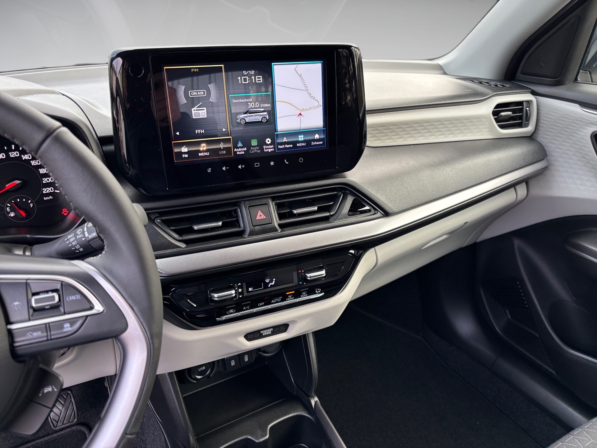 3 Jahre Herstellergarantie + 3 Jahre Neuwagenanschlussgarantie ab ErstzulassungSUZUKI CONNECTDual-Sensor gestützte aktive Bremsunterstüzung mit Frontaufprall-/ & Querverkehrserkennung (DSBS)MüdigkeitserkennungSpurhaltewarnsystem mit Lenkeingriff & SpurhaltefunktionVerkehrszeichenerkennung mit optischer & akustischer Warnung bei Überschreitung der GeschwindigkeitToter Winkel-WarnsystemAusparkassistent (RCTA-Warnung beim rückwärtigen Ausparken vor querendem verkehr hinter dem Fahrzeug)AlarmanlageBerganfahrhilfeRückfahrkameraEinparkhilfe hinteneCall (automatischer Notruf)UnfalldatenspeicherAirbags vorn für Fahrer & BeifahrerBeifahrerairbag vorn, abschaltbarSeitenairbags vornVorhangairbags vorn & hintenDreipunkt-Sicherheitsgurte vorn & hinten je SitzplatzGurtstraffer & Gurtkraftbegrenzer vornSicherheitsgurte vorn höhenverstellbarRDKS-AnzeigeISOFIX-Kindersitzbefestigungen auf den beiden äußeren FondsitzenZentralverrieglung mit FunkfernbedinungKeyless Start (schlüsselloses Einsteigen & Starten mit Starterknopf)Außenspiegel elektrisch verstell-/ & anklappbar, beheizbar, mit integrierten SeitenblinkernLED-Scheinwerfer (Projektor Design)LichtsensorFernlichtassistentmanuelle LeuchtweitenregulierungLED-TagfahrlichtGuide me LightUltraviolett (UV) absorbierende Scheiben (Frontscheibe & vordere Seitenscheiben)Infrarot (IR) absorbierende Scheiben (Frontscheibe & vordere Seitenscheiben)Privacy Glass (Heckscheibe & hintere Seitenscheiben abgedunkelt)Außenspigel in DachfarbeDachkantenspoiler16″-Alufelgen poliertAudiosystem (inkl. DAB+) mit Smartphone-Anbindung inkl. Navi, Bluetooth-Freisprecheinrichtung & Lenkradbedienungkabelloses Apple CarPlay & Android AUTO9″ Display mit HD-Auflösung6 LautsprecherUSB-A AnschlussUSB-A Ladeanschluss (2,4A)USB-C Ladeanschluss (3,0A)Klimaautomatik mit PollenfilterWarmluftführung nach hintenFensterheber vorne & hinten elektrischAdaptiver Tempomat (ACC) mit Berücksichtigung erkannter GeschwindigkeitsbegrenzungenPolsterung anthrazit-grauSitzheizung vorneFahrersitz höhenverstellbarRücksitzlehne im Verhältnis 60:40 separat umklappbarLederlenkrad höhen-/ & längsverstellbarSilberne Applikationen am LenkradkranzSilberne Applikationen auf der TunnelkonsoleSilberne Dekorleiste an den Vordertüren & ArmaturenbrettSilberne Applikationen an den verstellungen der Lüftungsdüsen & GetränkehalternMittelkonsole mit Ablagefach & GetränkehalternSonnenblenden vorn mit SchminkspiegelHaltegriff vorne (Beifahrerseite)Haltegriffe hintenFarbiges LCD-Multifunktionsdisplay12V-Anschluß in MittelkonsoleLadenkantenschutzfolieLeasing & Finanzierung möglichInzahlungnahme möglich