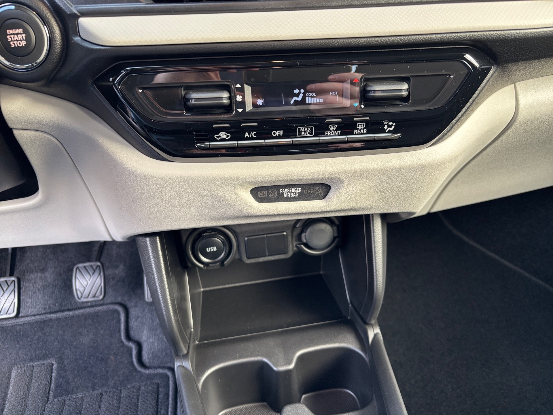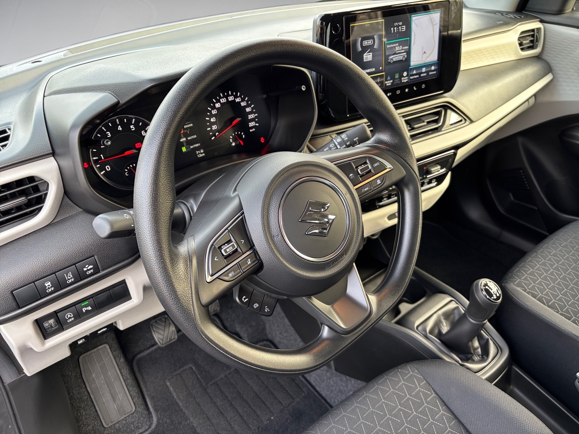 ACHTUNG: Preis nur gültig bei Leasing!Bar- bzw. Finanzierungspreis: 21.340,–€3 Jahre Herstellergarantie + 3 Jahre Neuwagenanschlußgarantie ab ErstzulassungSuzuki ConnectALLGRIP AutoDual-Sensor gestützte aktive Bremsunterstützung (DSBS) mit Frontalaufprall- u. QuerverkehrserkennungMüdigkeitserkennungSpurhaltewarnsystem mit Lenkeingriff und SpurhaltefunktionVerkehrszeichenerkennung mit optischer u. akustischer Warnung bei Überschreitung der GeschwindigkeitToter Winkel-WarnsystemAusparkassistent (RCTA-Warnung beim rückwärtigen Ausparken vor querendem Verkehr hinter dem Fahrzg.)AlarmanlageBerganfahrhilfeRückfahrkameraEinparkhilfe hinteneCall (automatischer Notruf)UnfalldatenspeicherAirbags vorn für Fahrer und BeifahrerBeifahrerairbag vorn, abschaltbarSeitenairbags vornVorhangairbags vorn und hintenDreipunkt-Sicherheitsgurte vorn und hinten je SitzplatzGurtstraffer und Gurtkraftbegrenzer vornReifendruck-KontrollanzeigeISOFIX-Kindersitzbefestigungen auf den beiden äußeren FondsitzenZentralverriegelung mit FunkfernbedienungKeyless Start (schlüsselloses Einsteigen und Starten mit Starterknopf)Außenspiegel beheizbarAußenspiegel elektrisch verstellbarLED-Scheinwerfer (Projektor Design)LichtsensorFernlichtassistentManuelle LeuchtweitenregulierungLED-TagfahrlichtGuide me LightUltraviolett (UV) absorbierende Scheiben (Frontscheibe und vordere Seitenscheiben)Außenspiegel in DachfarbeDachkantenspoiler15″-Stahlfelgen (Bereifung 175/65 R15) inkl. RadzierblendenAudio-System (inkl.DAB+) m. Smartphone-Anbindung inkl. Navi,Bluetooth-Freisprecheinr. u. Lenkradbed.9 Zoll Display mit HD-Auflösung2 LautsprecherUSB-A AnschlussKlimaanlage mit PollenfilterFensterheber vorn und hinten elektrischAdaptiver Tempomat (ACC) mit Berücksichtigung erkannter GeschwindigkeitsbegrenzungenPolsterung schwarzRücksitzlehne im Verhältnis 60:40, separat umklappbarLenkrad höhen- und längsverstellbarMittelkonsole mit Ablagefach und GetränkehalternSonnenblende vorn mit Schminkspiegel (Fahrerseite)Haltegriff (Beifahrerseite vorne)Farbiges LCD-Multifunktionsdisplay12V- Anschluß in MittelkonsoleLeasing/Finanzierung möglichInzahlungnahme möglich