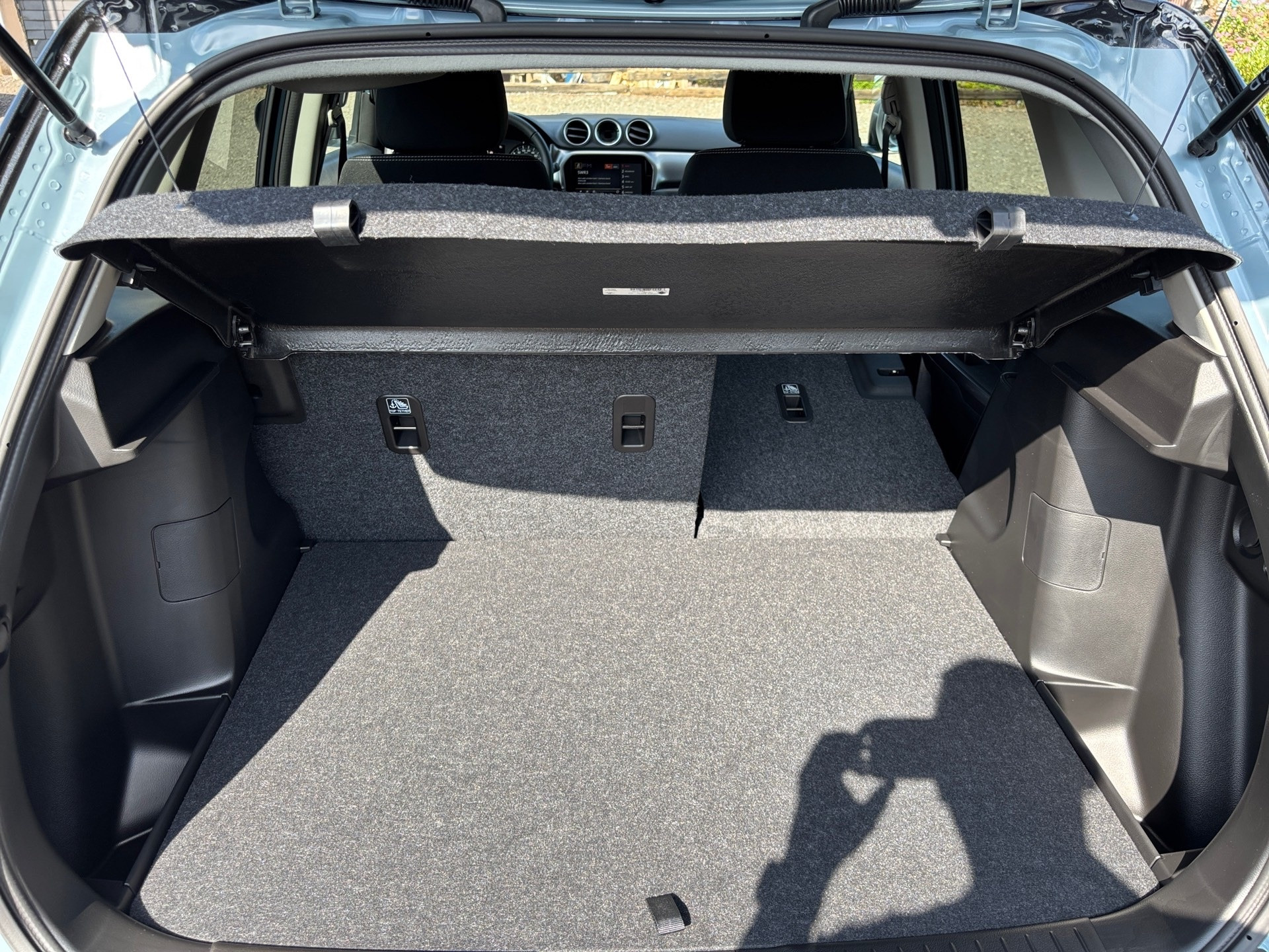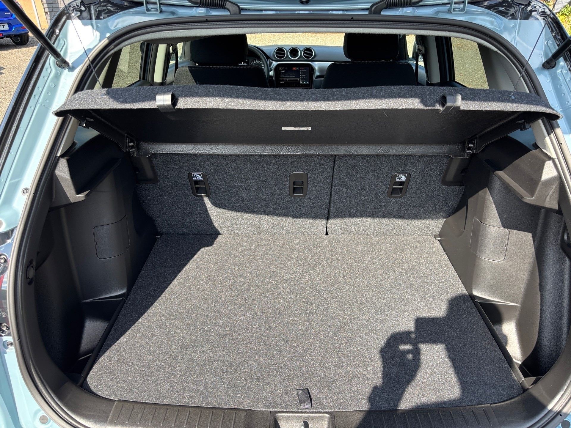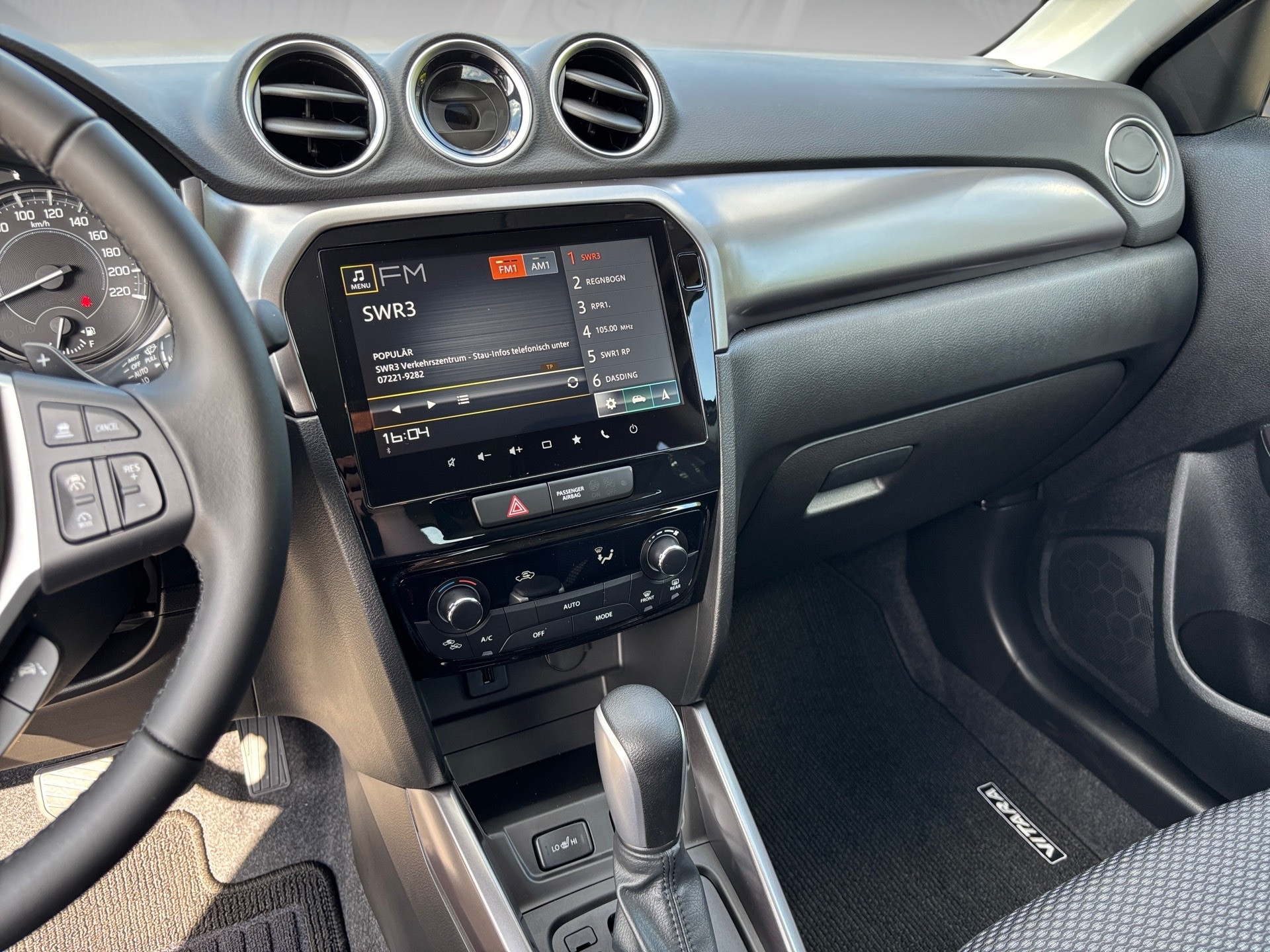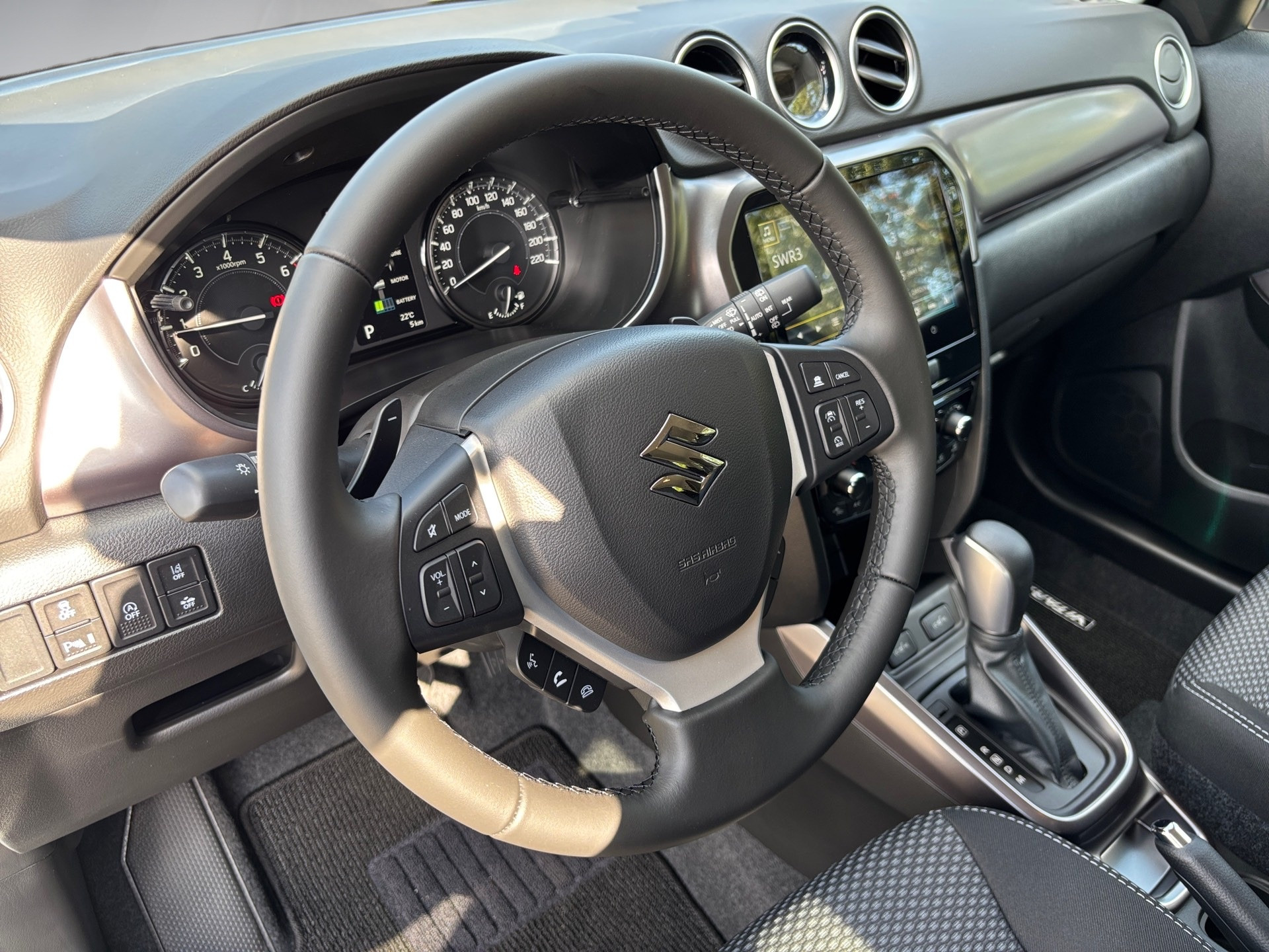 Automatik48V Mild-Hybrid System3 Jahre Herstellergarantie plus 3 Jahre Neuwagenanschlußgarantie ab ErstzulassungSuzuki ConnecteCall (automatischer Notruf)UnfalldatenspeicherDual-Sensor gestützte aktive Bremsunterstützung (DSBS)MüdigkeitserkennungSpurhaltesystem mit Lenkeingriff & SpurhaltefunktionVerkehrszeichenerkennung mit optischer & akustischer Warnung bei Überschreitung der GeschwindigkeitToter Winkel WarnsystemAusparkassistent (RCTA-Warnung beim rückwärtigemAusparken vor querendem Verkehr hinter dem Auto)Keyless Entry & StartKlimaautomatik mit PollenfilterElektrische Fensterheber vorneElektrische Fensterheber hintenAdaptiver Tempomat (ACC) mit GeschwindigkeitsbegrenzerESPSitzheizung vorne 2-stufigFahrer höhenverstellbarLederlenkrad höhen-und längsverstellbarTürinnengriffe verchromtInnenraumdekorelement für Armaturenbrett silberfarbenSilberne Applikationen im InnenraumDoppelter KofferraumbodenSonnenblende vorn mit Schminkspiegel beleuchtetFarbiges LCD-MultifunktionsdisplayAlarmanlageBerganfahrhilfeBergabfahrhilfeRückfarkameraFahrer und BeifahrerairbagSeitenairbags vorneBeifahrerairbag abschaltbarVorhangairbags vorn und hintenInnenspiegel automatisch abblendendGurtstraffer vornGurtkraftbegrenzer vornSicherheitsgurte vorn höhenverstellbarReifendruck-KontrollanzeigeISOFIX-Kindersitzbefestigung hintenReifenreparaturkitZentralverriegelung mit FernbedienungStart-Stop-SystemAußenspiegel beheizbarAußenspiegel elektrisch einstellbarAußenspiegel elektrisch anklappbarLichtsensorRegensensorFernlichtassistentLED-Scheinwerfer mit automatischer EinstellungLED-TagfahrlichtLED-RückleuchtenScheiben rundum getöntPrivacy Glass (Heckscheibe und hintere Seitenscheibe abgedunkelt)Dachrelig silberfarben17″ AlufelgenDrehzahlmesser9″ Display in HD-AuflösungAudio-System (inkl. DAB+)Android Auto und Apple Car PlayNavigationssystemSmartphone-AnbindungBluetooth-FreisprecheinrichtungUSB-AnschlussMultifunktionslenkradRücksitzlehne im Verhältnis 60:40 umklappbarServolenkungMittelkonsole mit Ablagefach und GetränkehalterMittelarmlehne mit Ablagefach vornSeitenfächer vorn & hintenAußenspiegel lackiertTürgriffe in Wagenfarbe lackiertAußendekorelemente (Kühlergrill und Kotflügelverzierung) in Chrom-OptikAblagetasche an der Rückseite des BeifahrersitzesFinanzierung ist möglichLeasing ist möglichInzahlungnahme ist möglich