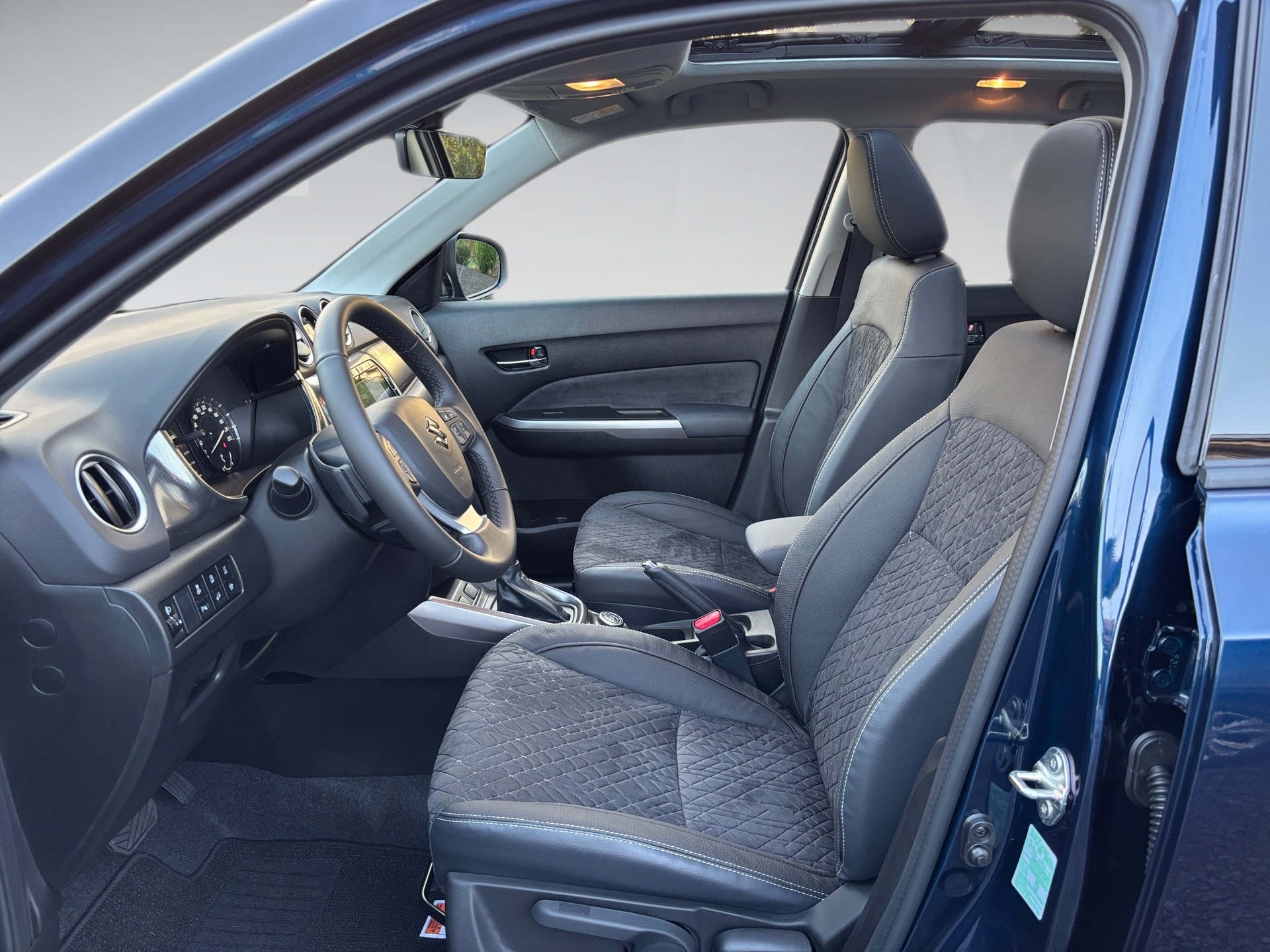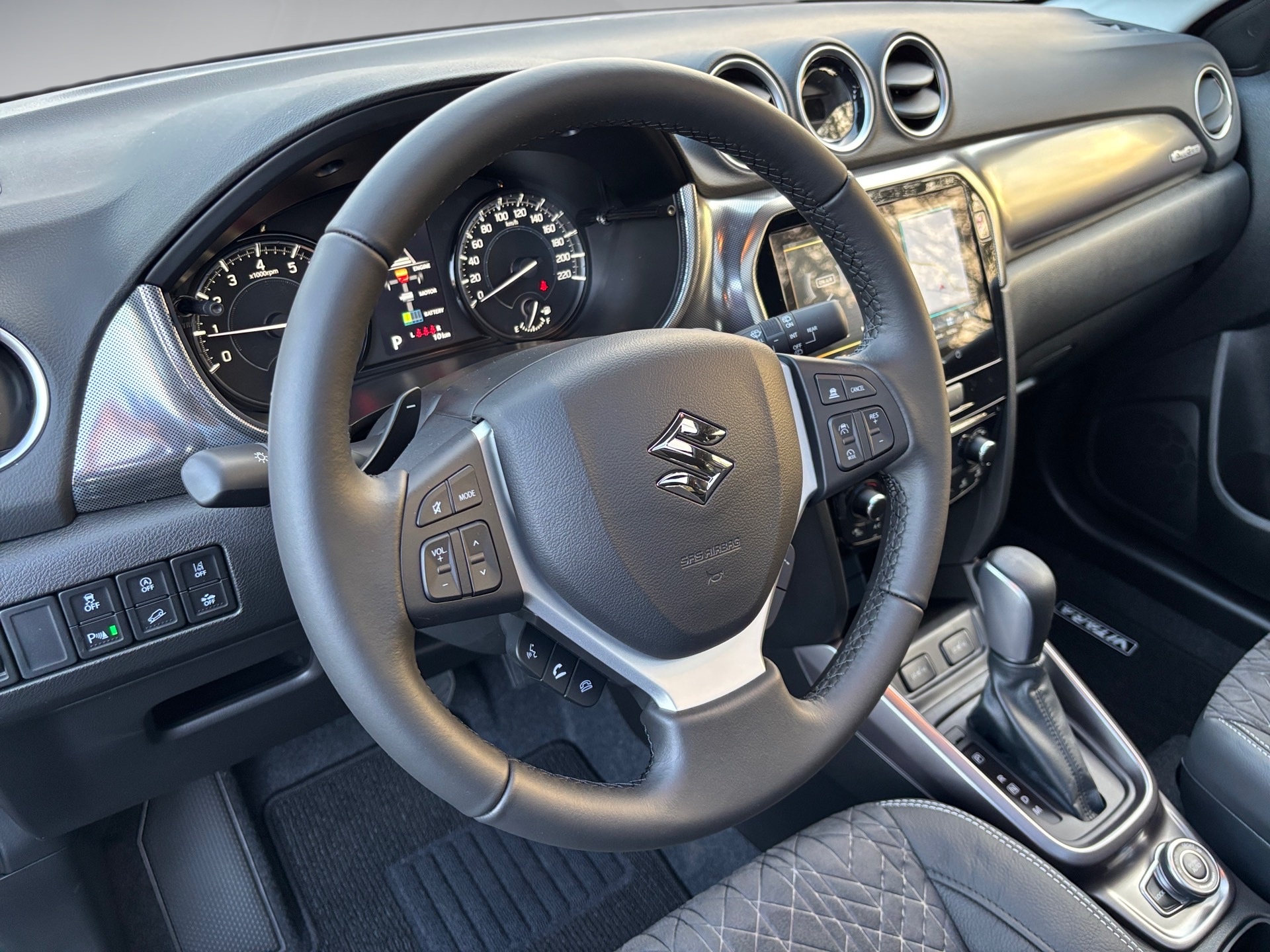 48V Mild-Hybrid System3 Jahre Herstellergarantie plus 3 Jahre Neuwagenanschlußgarantie ab ErstzulassungSuzuki ConnecteCall (automatischer Notruf)UnfalldatenspeicherAutomatikElektrisches Panorama-Glasschiebehubdach mit SonnenblendeDual-Sensor gestützte aktive Bremsunterstützung (DSBS)MüdigkeitserkennungSpurhaltesystem mit Lenkeingriff & SpurhaltefunktionVerkehrszeichenerkennung mit optischer & akustischer Warnung bei Überschreitung der GeschwindigkeitToter Winkel WarnsystemAusparkassistent (RCTA-Warnung beim rückwärtigemAusparken vor querendem Verkehr hinter dem Auto)Keyless Entry & StartKlimaautomatik mit PollenfilterElektrische Fensterheber vorneElektrische Fensterheber hintenAdaptiver Tempomat (ACC) mit GeschwindigkeitsbegrenzerESPSitzheizung vorne 2-stufigFahrer höhenverstellbarLederlenkrad höhen-und längsverstellbarTürinnengriffe verchromtInnenraumdekorelement für Armaturenbrett silberfarbenSilberne Applikationen im InnenraumDoppelter KofferraumbodenSonnenblende vorn mit Schminkspiegel beleuchtetFarbiges LCD-MultifunktionsdisplayAlarmanlageBerganfahrhilfeBergabfahrhilfeRückfarkameraEinparkhilfe vorn und hinten mit akustischer und optischer AnzeigeFahrer und BeifahrerairbagSeitenairbags vorneBeifahrerairbag abschaltbarVorhangairbags vorn und hintenInnenspiegel automatisch abblendendSUZUKI-TEX Mikrofaserstoff PolsterungGurtstraffer vornGurtkraftbegrenzer vornSicherheitsgurte vorn höhenverstellbarReifendruck-KontrollanzeigeISOFIX-Kindersitzbefestigung hintenReifenreparaturkitZentralverriegelung mit FernbedienungStart-Stop-SystemAußenspiegel beheizbarAußenspiegel elektrisch einstellbarAußenspiegel elektrisch anklappbarAußenspiegel mit integrierten SeitenblinkernLichtsensorRegensensorFernlichtassistentLED-Scheinwerfer mit automatischer EinstellungLED-TagfahrlichtLED-RückleuchtenScheiben rundum getöntPrivacy Glass (Heckscheibe und hintere Seitenscheibe abgedunkelt)Dachrelig silberfarben17″ Alufelgen poliertDrehzahlmesser9″ Display in HD-AuflösungAudio-System (inkl. DAB+)Android Auto und Apple Car PlayNavigationssystemSmartphone-AnbindungBluetooth-FreisprecheinrichtungUSB-AnschlussMultifunktionslenkradRücksitzlehne im Verhältnis 60:40 umklappbarServolenkungMittelkonsole mit Ablagefach und GetränkehalterMittelarmlehne mit Ablagefach vornSeitenfächer vorn & hintenAußenspiegel lackiertTürgriffe in Wagenfarbe lackiertAußendekorelemente (Kühlergrill und Kotflügelverzierung) in Chrom-OptikAblagetasche an der Rückseite des BeifahrersitzesFinanzierung ist möglichLeasing ist möglichInzahlungnahme ist möglich