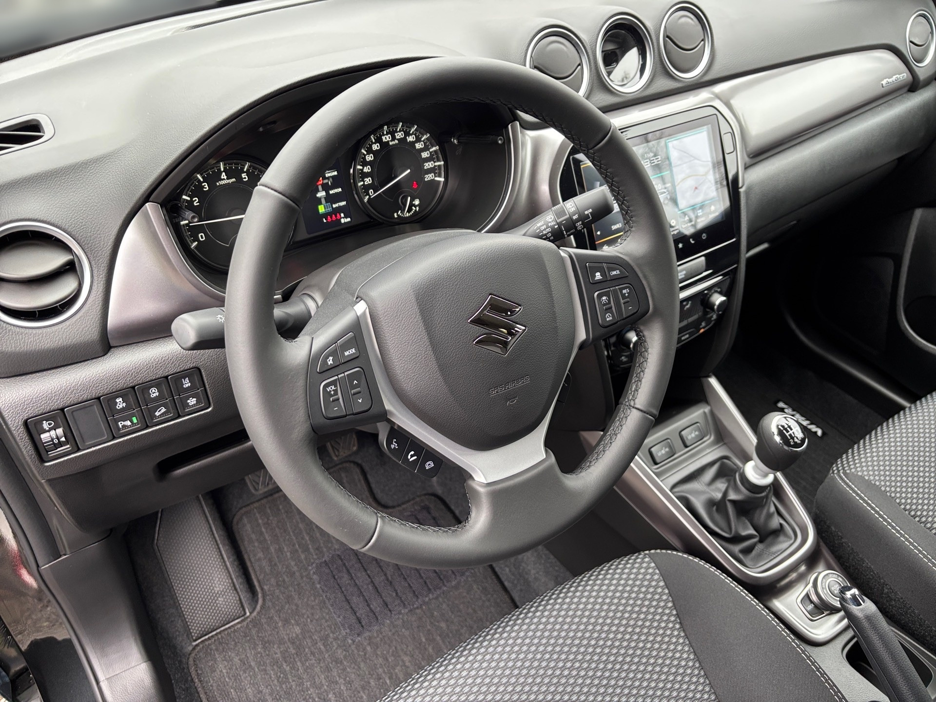 48V Mild-Hybrid System3 Jahre Herstellergarantie plus 3 Jahre Neuwagenanschlußgarantie ab ErstzulassungSuzuki ConnecteCall (automatischer Notruf)UnfalldatenspeicherDual-Sensor gestützte aktive Bremsunterstützung (DSBS)MüdigkeitserkennungSpurhaltesystem mit Lenkeingriff & SpurhaltefunktionVerkehrszeichenerkennung mit optischer & akustischer Warnung bei Überschreitung der GeschwindigkeitToter Winkel WarnsystemAusparkassistent (RCTA-Warnung beim rückwärtigemAusparken vor querendem Verkehr hinter dem Auto)Keyless Entry & StartKlimaautomatik mit PollenfilterElektrische Fensterheber vorneElektrische Fensterheber hintenAdaptiver Tempomat (ACC) mit GeschwindigkeitsbegrenzerESPSitzheizung vorne 2-stufigFahrer höhenverstellbarLederlenkrad höhen-und längsverstellbarTürinnengriffe verchromtInnenraumdekorelement für Armaturenbrett silberfarbenSilberne Applikationen im InnenraumDoppelter KofferraumbodenSonnenblende vorn mit Schminkspiegel beleuchtetFarbiges LCD-MultifunktionsdisplayAlarmanlageBerganfahrhilfeBergabfahrhilfeRückfarkameraFahrer und BeifahrerairbagSeitenairbags vorneBeifahrerairbag abschaltbarVorhangairbags vorn und hintenInnenspiegel automatisch abblendendGurtstraffer vornGurtkraftbegrenzer vornSicherheitsgurte vorn höhenverstellbarReifendruck-KontrollanzeigeISOFIX-Kindersitzbefestigung hintenReifenreparaturkitZentralverriegelung mit FernbedienungStart-Stop-SystemAußenspiegel beheizbarAußenspiegel elektrisch einstellbarAußenspiegel elektrisch anklappbarLichtsensorRegensensorFernlichtassistentLED-Scheinwerfer mit automatischer EinstellungLED-TagfahrlichtLED-RückleuchtenScheiben rundum getöntPrivacy Glass (Heckscheibe und hintere Seitenscheibe abgedunkelt)Dachrelig silberfarben17″ AlufelgenDrehzahlmesser9″ Display in HD-AuflösungAudio-System (inkl. DAB+)Android Auto und Apple Car PlayNavigationssystemSmartphone-AnbindungBluetooth-FreisprecheinrichtungUSB-AnschlussMultifunktionslenkradRücksitzlehne im Verhältnis 60:40 umklappbarServolenkungMittelkonsole mit Ablagefach und GetränkehalterMittelarmlehne mit Ablagefach vornSeitenfächer vorn & hintenAußenspiegel lackiertTürgriffe in Wagenfarbe lackiertAußendekorelemente (Kühlergrill und Kotflügelverzierung) in Chrom-OptikAblagetasche an der Rückseite des BeifahrersitzesFinanzierung ist möglichLeasing ist möglichInzahlungnahme ist möglich